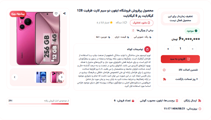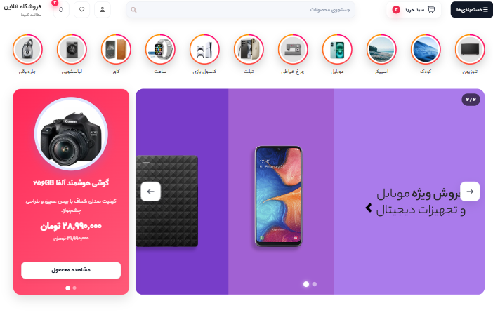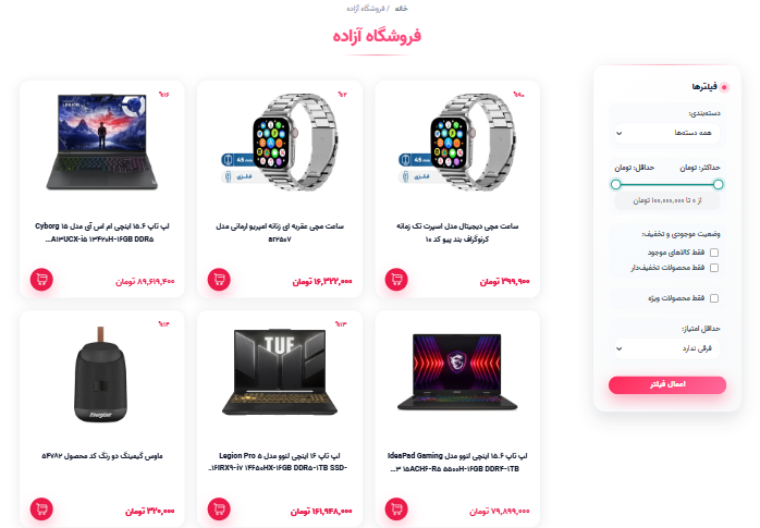 بهترین انتخاب برای فروشگاههای واقعی: تم قرمز/سفید/مشکی، طراحی مدرن، تجربه خرید روان، ساختار تمیز برای توسعه و سرعت بالا.